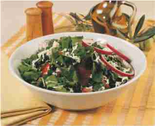 Akdeniz yeşillikleri üzerine domates salatalık rendelenmiş beyaz peynir mısır sosları ile birlikte servis yapılır