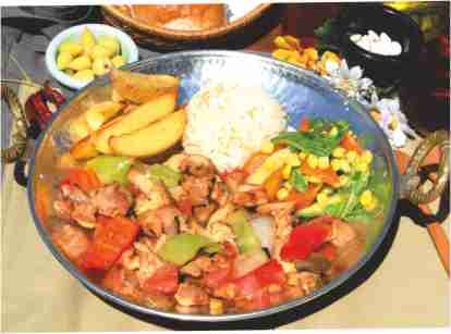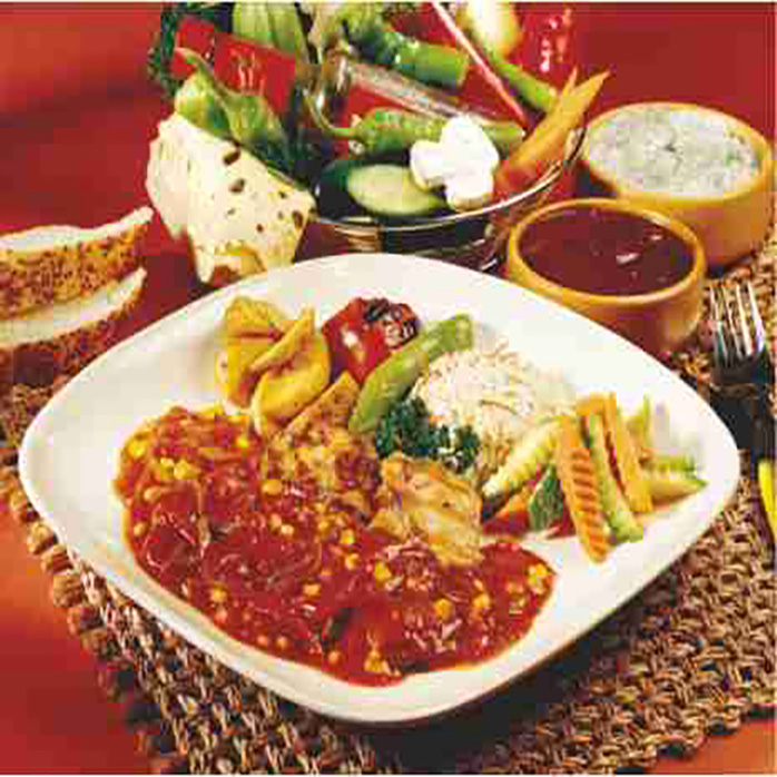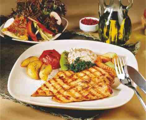 Özel marine edilmiş tavuk göğüs karışık sebze garnitür ile birlikte servis edilir.